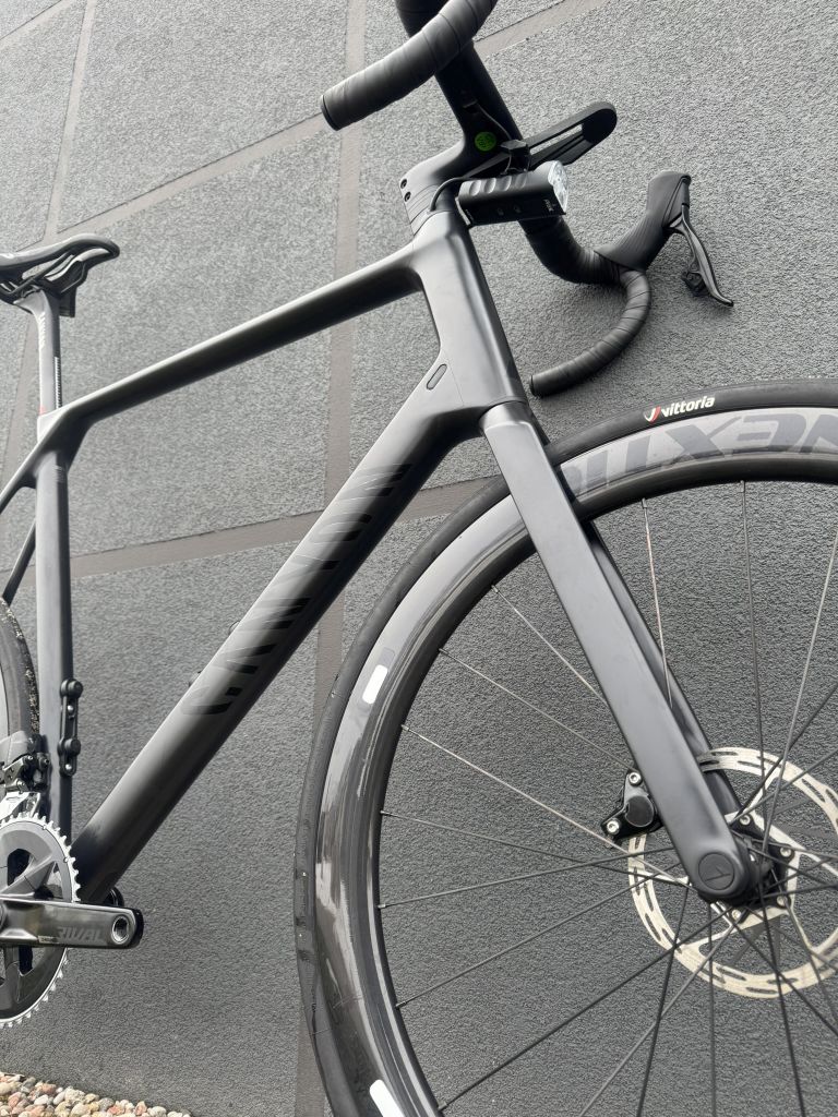 Canyon Endurace oklejony w całości matową folią PPF i od razu w rozmiarze ramy 2XL.