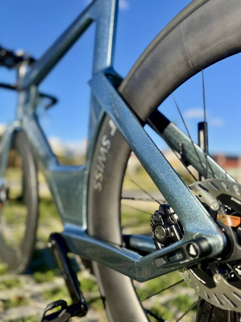 Oklejenie objęło całą ramę oraz komponenty takie jak korba, kierownica i sztyca.